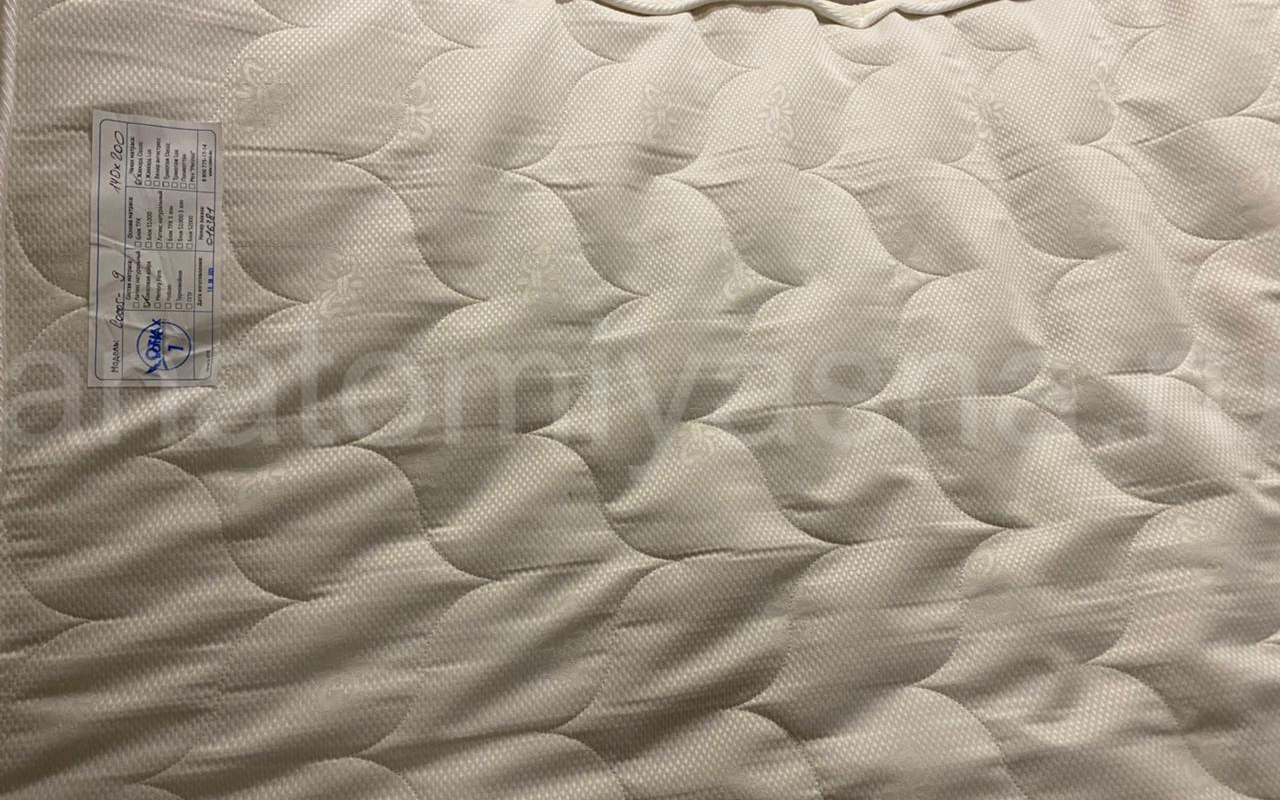 Верхнее покрытие матраса хлопковый жаккард - высокопрочная натуральная ткань, состоящая из хлопчатобумажного волокна с особым способом переплетения волокон. Хлопковый жаккард может быть двойным (дублированным) или недублированным. Как правило, дублированный жаккард используют в качестве верхнего покрытия для матрасов, чехлов и наматрасников. Особенность материала заключается в том, что рисунок, получаемый в результате переплетения нитей волокна, одинаковый с лицевой и изнаночной стороны. Самой важной характеристикой ткани является его экологичность и износостойкость.